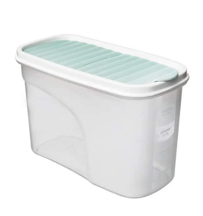 Polopriehľadná plastová dóza BONNY 1,2 l z PP s mint odklápacím viečkom (PE) – decentné a prehľadné ukladanie múky, strukovín, cereálií či sypkých surovín.