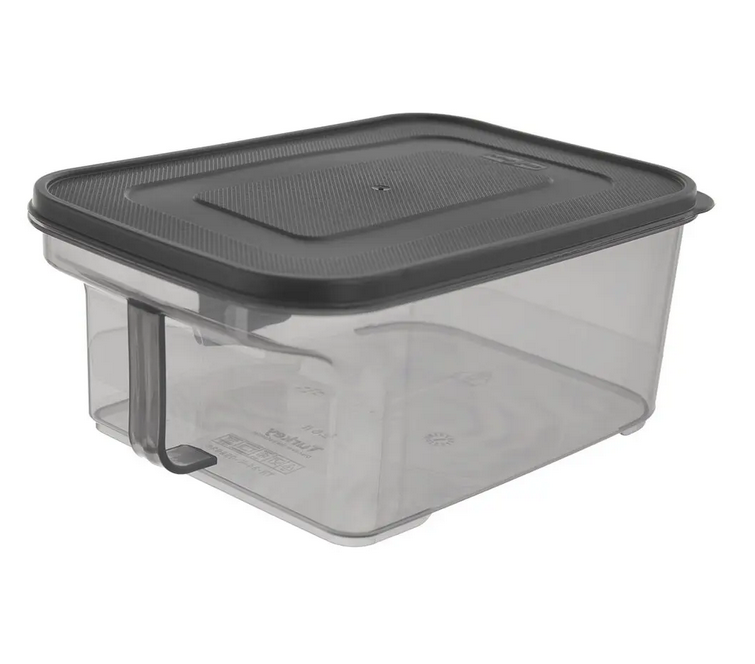 Nižšia šikovná zásobnica na potraviny s viečkom a držadlom z PP plastu (dymovo transparentná) – prehľadne uložíte múku, soľ, cukor, krupicu, strúhanku, cestoviny či strukoviny.