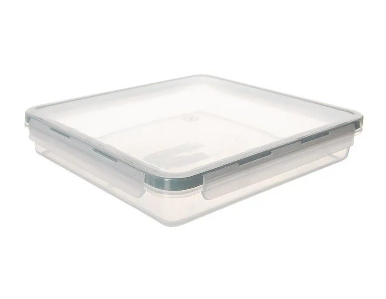 Klipy a silikónové tesnenie na viečku zaručia bezpečné uzavretie. Nízky profil optimalizuje priestor v chladničke alebo skrinke.