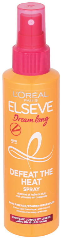 Sprej Dream Long Defeat The Heat poskytuje vašim dlhým vlasom spoľahlivú ochranu pred teplom pri používaní žehličky či iných tepelných stylingových nástrojov. Jeho ľahké ochranné zloženie chráni vlasy pred poškodením spôsobeným teplom, vonkajšími vplyvmi a vlhkosťou. Tento sprej, obohatený o vitamíny a ricínový olej, zabezpečuje hladký a lesklý vzhľad vlasov bez krepovatenia až na 3 dni. Pre zdravé, lesklé a hebké vlasy je Elséve Dream Long sprej ideálnou voľbou na ochranu pred teplom.
