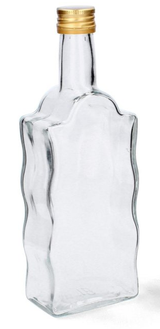 - sklenená číra fľaša na alkohol