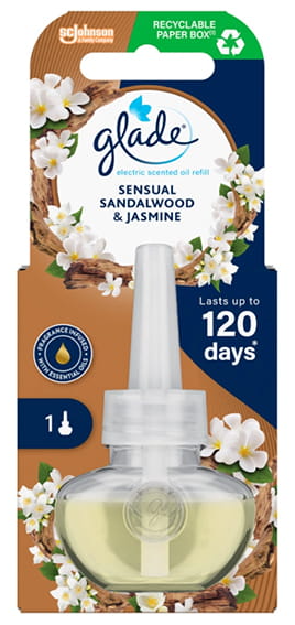 Glade náhradná náplň do osviežovača vzduchu Sensual Sandalwood & Jasmine prebudí vaše zmysly príjemnou dlhotrvajúcou vôňou santalového dreva a jazmínu. Navyše vydrží až neuveriteľných 100 dní. Nechajte sa rozmaznávať.