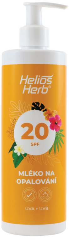 Spoľahlivá ochrana a krásne, dlhotrvajúce opálenie. Helios Herb mlieko na opaľovanie SPF 20 poskytuje stredne vysokú ochranu pred UVA a UVB žiarením a zároveň vďaka obsahu beta-karoténu podporuje rovnomerné a trvalejšie opálenie pokožky.