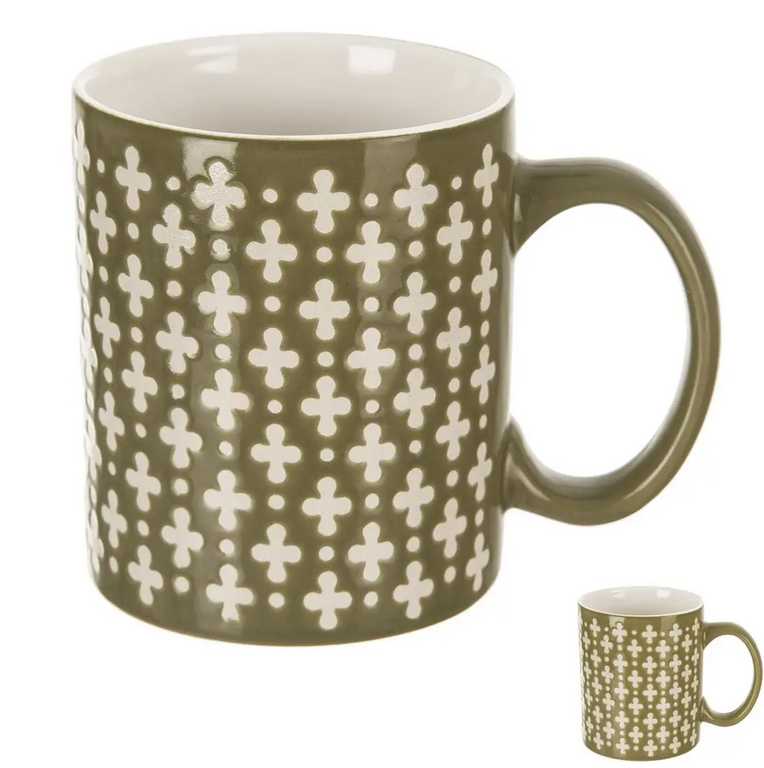 Vychutnajte si obľúbený čaj, horúcu kávu alebo iný nápoj v štýlovom keramickom hrnčeku v jemnej zelenej farbe. Plošne ho zdobia drobná krížiková výšivka, ktorá odhaľuje autentickú štruktúru surovej keramiky a dodáva mu jedinečný ráz.