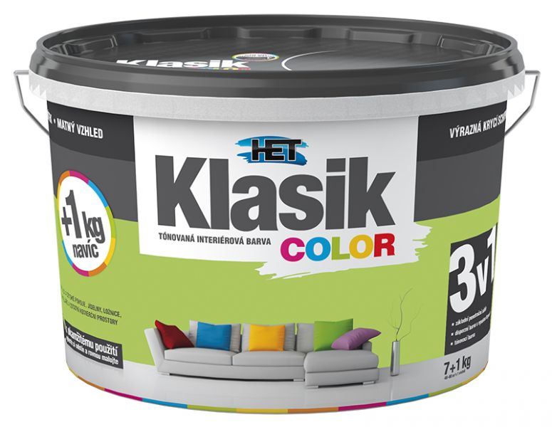 KLASIK COLOR SVETLO ZELENÝ 7 KG 059Odporúčame pre obývacie a komerčné priestory, detské izby, jedálne, chodby, kancelárie, predajné priestory.Prednosti: okamžitá aplikácia tónovanej farbyvýrazná kryciu schopnosť a roztierateľnosťmatný vzhľad, vynikajúca paropriepustnosť, odolnosť voči oteru za suchavhodná na nátery omietok sanačných systémov - spĺňa požiadavky smernice WTA pre povrchové vrstvy sanačných omietok (Sd = 0,05 m)cenová výhodnosťodtieň:16 farebných odtieňovVýdatnosť:6 - 10 m2/kg v jednej vrstve podľa nasiakavosti a štruktúry podkladu a hrúbky vrstvyDoba schnutia:min. 4 h pri 20 ° C a 60% relatívnej vlhkosti vzduchuskladovanie:36 mesiacov od dátumu výroby v pôvodnom neotvorenom obalepri teplote +3 až +30 ° C, nesmie zmrznúť, chrániť pred priamym slnečným žiarením