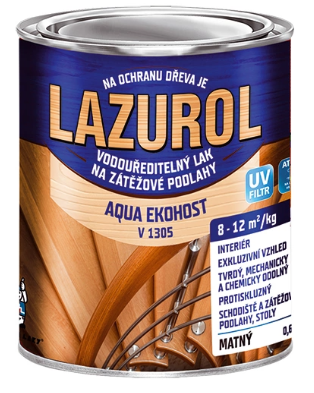 Lazurol Aqua Ekohost mat V1305 je ideálnou voľbou pre tých, ktorí hľadajú vysoko kvalitný a odolný lak na drevo, ktorý poskytuje nielen ochranu, ale aj esteticky príjemný vzhľad pre interiérové drevené povrchy.