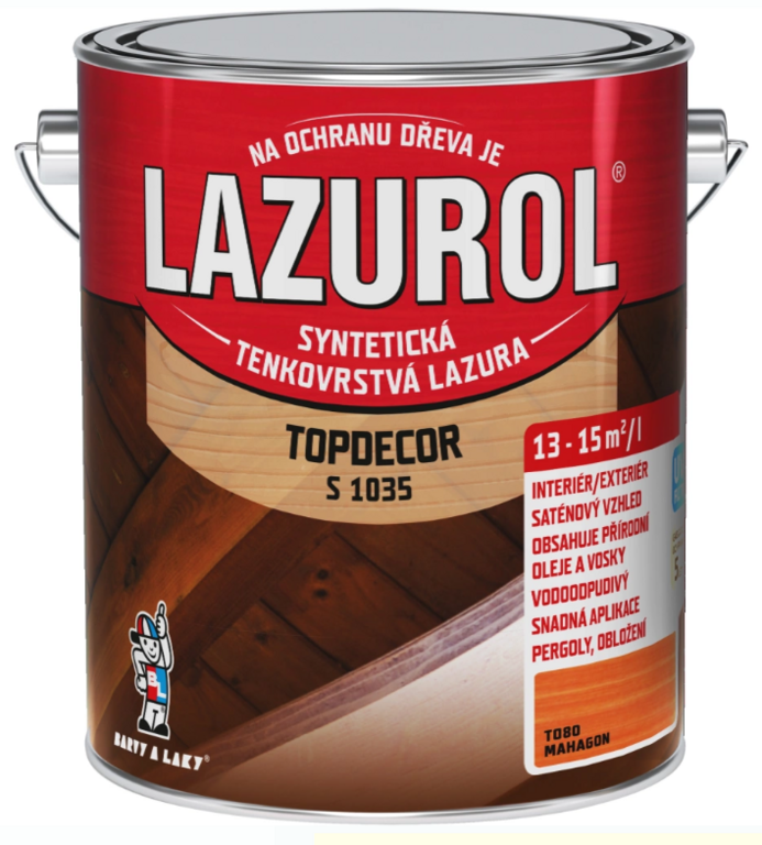 Je lak syntetický lazúrovací tenkovrstvový s prídavkom zmesi špeciálnych voskov a olejov. Lazurol Topdecor je určený k ochranným lazúrovacím náterom mäkkého i tvrdého dreva, vystaveného poveternostným vplyvom ik náterom v interiéroch. Hlboko preniká do štruktúry dreva a výrazne zdôrazní štruktúru dreva. Poskytuje dlhodobú ochranu dreva proti vode a UV žiareniu. Nátery sú stálofarebné, ľahko obnoviteľné a nepraskajú.