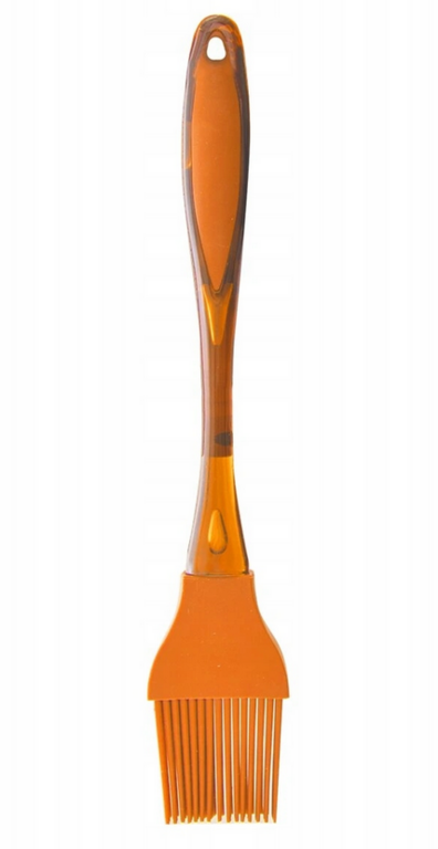 Mašlovačka 22 cm s oranžovou plastovou rukoväťou je praktická pomôcka na potieranie mäsa marinádou, ale aj pri pečení sladkých i slaných koláčov, štrúdle či cukroví. Vďaka silikónovým štetinám so šírkou 4 cm sa s ňou pracuje pohodlne a presne.