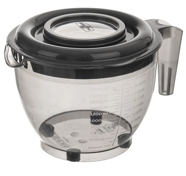Pri šľahaní stačí odklopiť stredovú časť viečka, aby mali šľahacie metly dostatok priestoru, pričom okraje zostanú zakryté a chránia kuchyňu pred rozstrekovaním. Po priklopení stredovej časti viečka sa zase zabráni vysychaniu pripravovaných dobrôt.