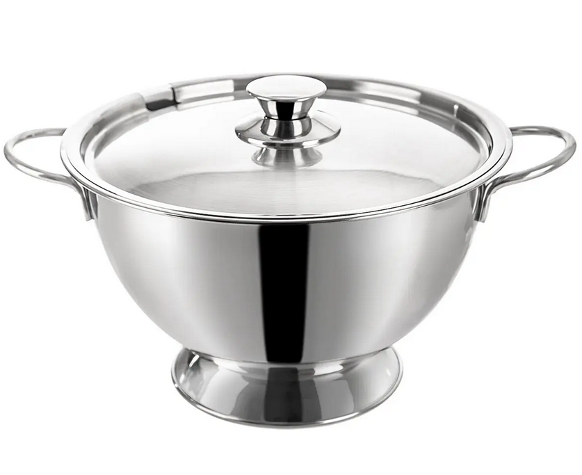 Polievková misa z nerezovej ocele je ideálna na servírovanie polievok pri rodinnom obede, návšteve aj v gastroprevádzkach. Vďaka dvom bočným držadlám sa pohodlne prenáša a praktické veko s otvorom umožňuje uložiť naberačku bez toho, aby bolo potrebné pokrievku dávať dole.