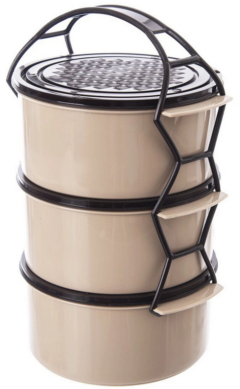 Praktický trojposchodový obedár s objemom 3 × 1,5 l je ideálnym riešením na prehľadné uloženie a bezpečné prenášanie jedla. Vďaka samostatným nádobám môžete jednoducho oddeliť jednotlivé chody – hlavné jedlo, prílohu či dezert.