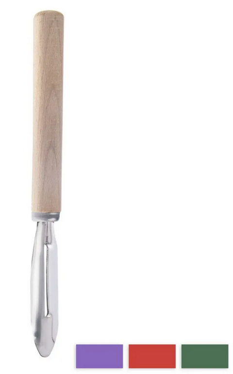 Ergonomická drevená rukoväť zabezpečuje pohodlné držanie a jednoduchú manipuláciu. Škrabka je určená pre ľavákov a je vhodná na bežné domáce aj profesionálne použitie.