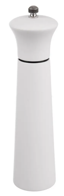 Mechanický mlynček na soľ, korenie alebo iné korenie je štýlový a praktický doplnok do každej kuchyne. Vďaka elegantnému bielemu prevedeniu z gumovníkového dreva sa hodí na kuchynskú linku aj jedálenský stôl.