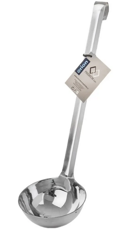 Nerezová naberačka s dĺžkou 34 cm je ideálnym nástrojom na servírovanie tekutých pokrmov, ako sú guláš, sviečková, slepačí vývar či cesnačka. S objemom 160 ml a praktickou dlhšou rukoväťou vám uľahčí prácu v kuchyni.