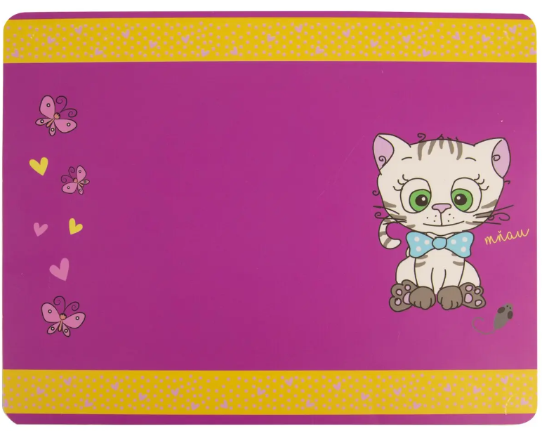 Prestieranie v rozmeroch 35x25 cm s detským motívom kocúrikov je skvelou voľbou pre mladých stravníkov. Toto veselé prestieranie prináša do jedálne zábavu a štýl. Súbor kocúrikov na ňom určite poteší malých milovníkov zvierat a prinesie do jedálne radosť a veselie. Navrhnuté s ohľadom na pohodlie a praktickosť, je to ideálny doplnok pre jedálny stôl, ktorý zabezpečuje ochranu pred škvrnami a nečistotami. Umožňuje ľahké čistenie a udržiavanie čistoty na stole, čím udržuje stolovanie čisté a pohodlné pre malých stravníkov i ich rodičov.