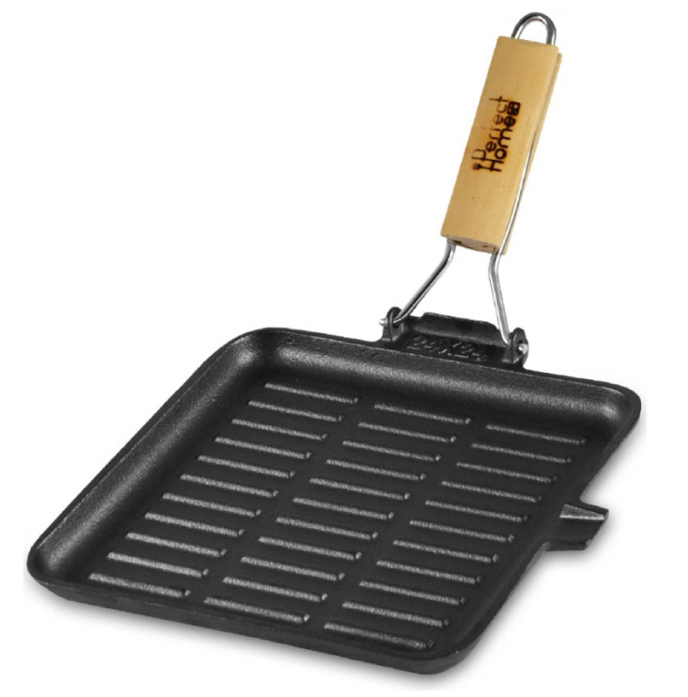 Panvica je vhodná na všetky typy sporákov, vrátane plynových, elektrických aj sklokeramických. Štvorcový tvar poskytuje dostatok priestoru na grilovanie a sklápateľná drevená rukoväť uľahčuje skladovanie. Pri manipulácii s horúcou panvicou sa odporúča používať ochranné rukavice alebo hrubú utierku, aby ste predišli popáleniu.