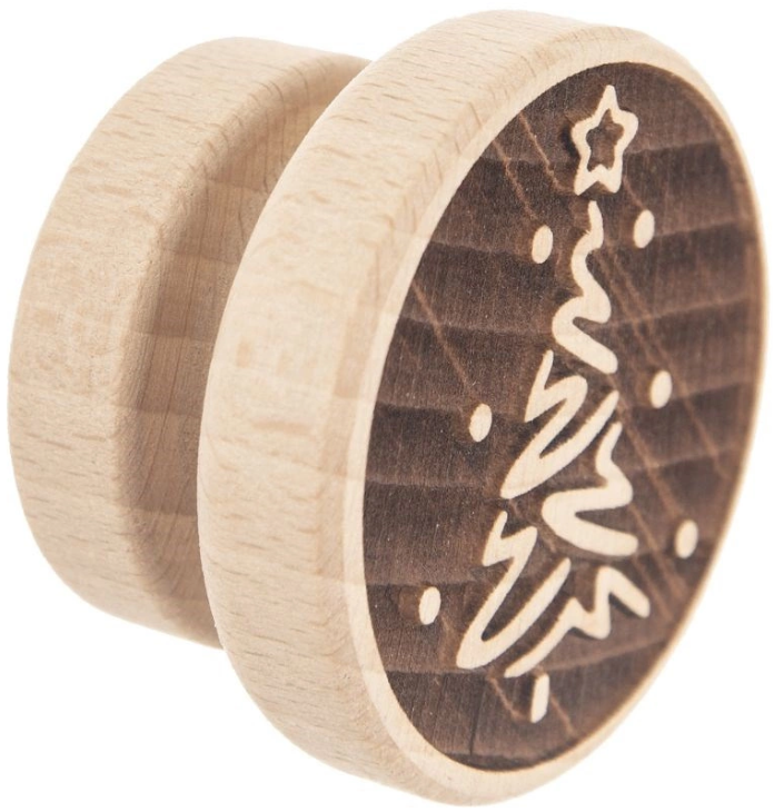 Praktická drevená pečiatka na sušienky s motívom stromčeka je ideálnym pomocníkom na jednoduché a efektné zdobenie domácich sušienok, perníčkov aj cukrárskej hmoty (fondánu). Vďaka výraznému vzoru vytvoríte sviatočný a elegantný motív rýchlo a bez námahy – stačí jemne pritlačiť.