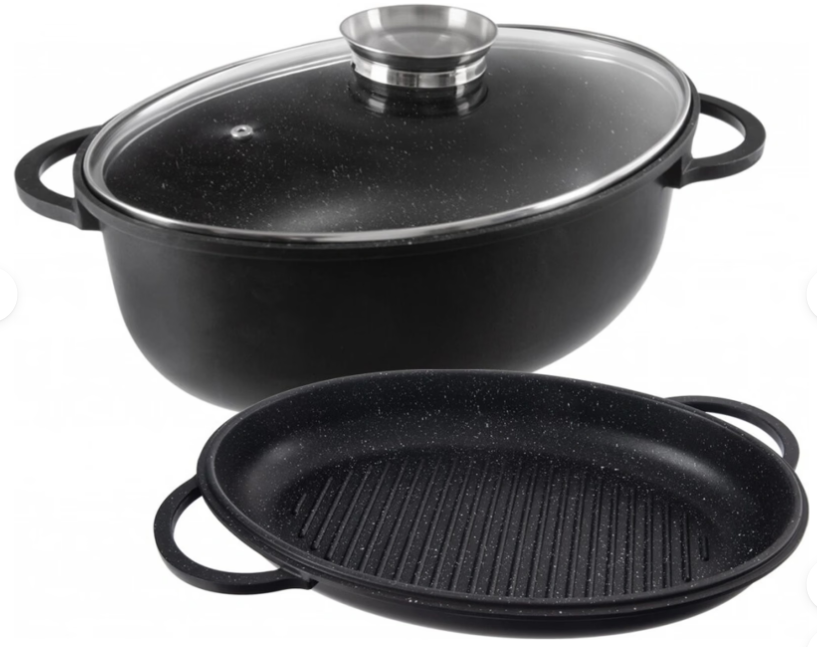 Liaty pekáč GRANDE je praktický a multifunkčný pomocník, ktorý využijete ako klasický pekáč na prípravu mäsa, ale aj ako aróma pekáč s pokrievkou. Unikátny systém dochucovania spočíva v tom, že tekuté dochucovadlo nalejete priamo do úchytu na pokrievke, odkiaľ samovoľne preteká otvorom do vnútra pekáča. Mäso tak zostáva šťavnaté, rovnomerne ochutené a nevysušuje sa.