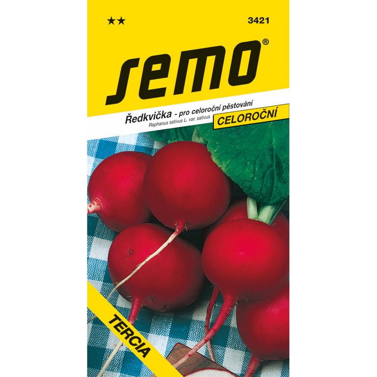 TERCIA - „celoročná“, poloranná, univerzálna odroda reďkovky na prirýchľovanie vo fóliovníkoch, poľné jarné i jesenné pestovanie. Tmavočervená, guľovitá až ploche guľovitá bulvička strednej veľkosti má jemnú, bielu dužinu. List je polovzpriamený, nižší, jemnejší, ale dostatočne pevný na zväzkovanie. Vyniká odolnosťou voči praskaniu a vybiehaniu.