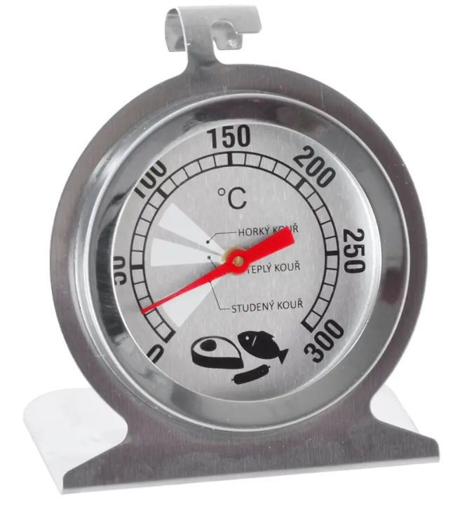 Široký teplotný rozsah: od 0 °C do +300 °C, stupňovanie po 10 °C, ideálne na kontrolu mäsa, klobások, rýb či iných pochutín.