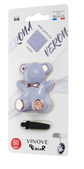 VINOVE Vibear Verona je dizajnový osviežovač vzduchu do auta v tvare medvedíka, ktorý vyniká nielen originálnym vzhľadom, ale aj dlhotrvajúcou a sofistikovanou vôňou. Inšpirovaný dielami pop-artového umelca Jeffa Koonsa a detskými hračkami, je ideálny pre tých, ktorí hľadajú moderný doplnok do interiéru vozidla s hravým nádychom.